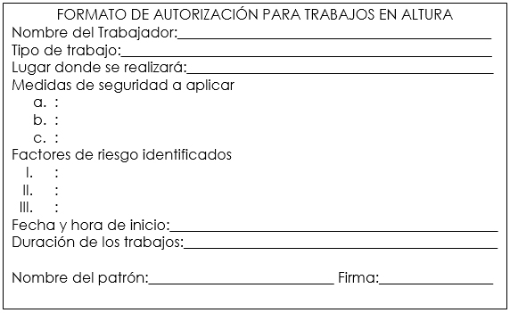 Por lo tanto, la autorización para trabajos en altura debe verse como la suma de todas las medidas de seguridad generadas y verificadas por el patrón, antes y durante su realización.Del cumplimiento a estas medidas normativas dependerá la seguridad del trabajador y por ende, la realización y calidad de la tarea que le fue encomendada, y en una perspectiva más amplia, la viabilidad del proyecto dentro de los tiempos y costos planeados originalmente, pues de haber un accidente, dependiendo de la gravedad de su resultado, existirán consecuencias de tipo legal, económicas y de imagen, no deseables por ninguna compañía por grande o posicionada que se encuentre.